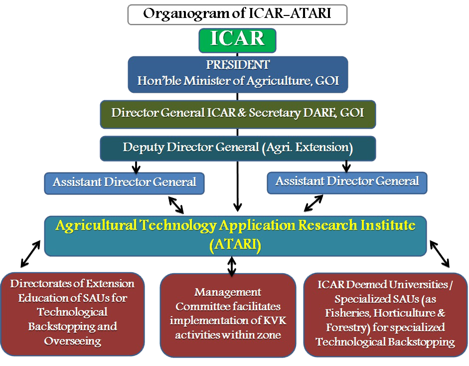 "Agricultural Technology Application Research Institute (ATARI)" is a transformation of erstwhile Zonal Project Directorate, Zone-1. ATARI, Zone-1 was established by the ICAR, New Delhi at Ludhiana to monitor and review lab to land programme. Presently, this institute has been entrusted to actively engage in planning, monitoring, reviewing and evaluating the ICAR sponsored transfer of technology projects implemented through Krishi Vigyan Kendras (KVKs) located in Punjab, Uttarakhand, Himachal Pradesh, Jammu & Kashmir and Ladakh. The mandate of the ATARI is: